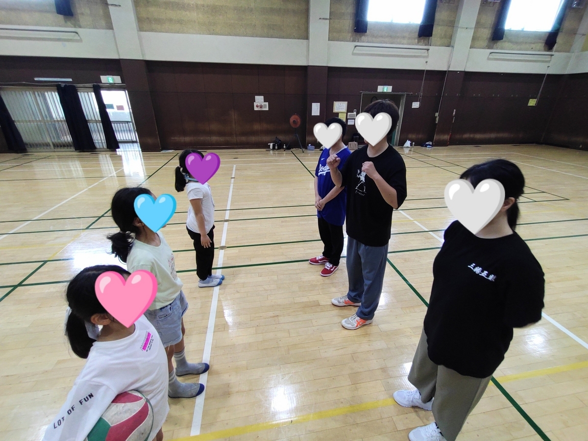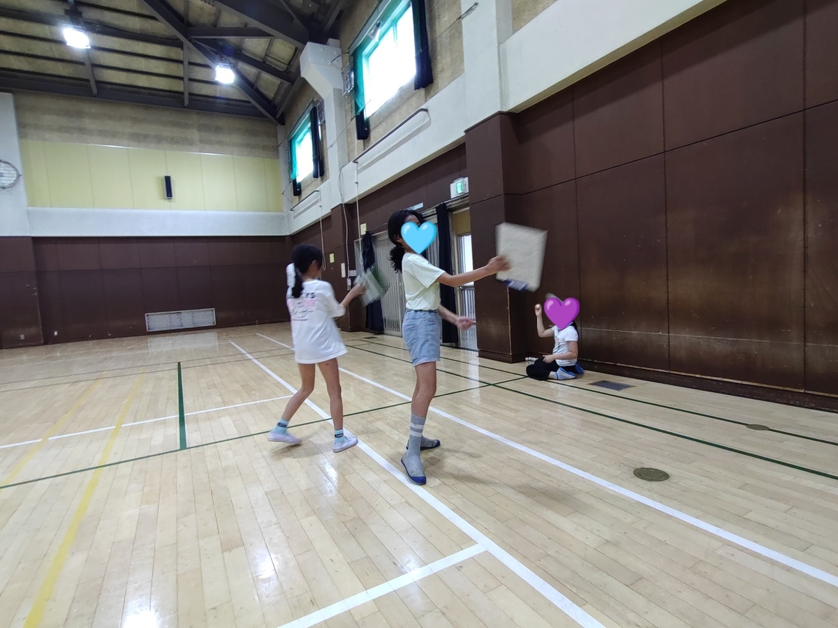 この日はとても暑かったため、こまめに休憩と水分補給をしつつ、自由時間を多くとって活動をしていました。バレーボールやバスケットボールを独自のルールで遊んだり、卓球の球と持ってきたファイルを使って新たな遊びを開発したりと、子どもたちの自由な発想には毎度驚かされます。